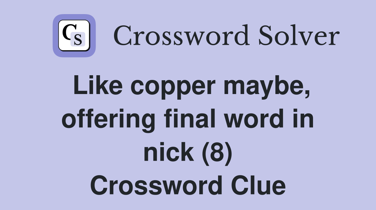 Like copper maybe offering final word in nick (8) Crossword Clue