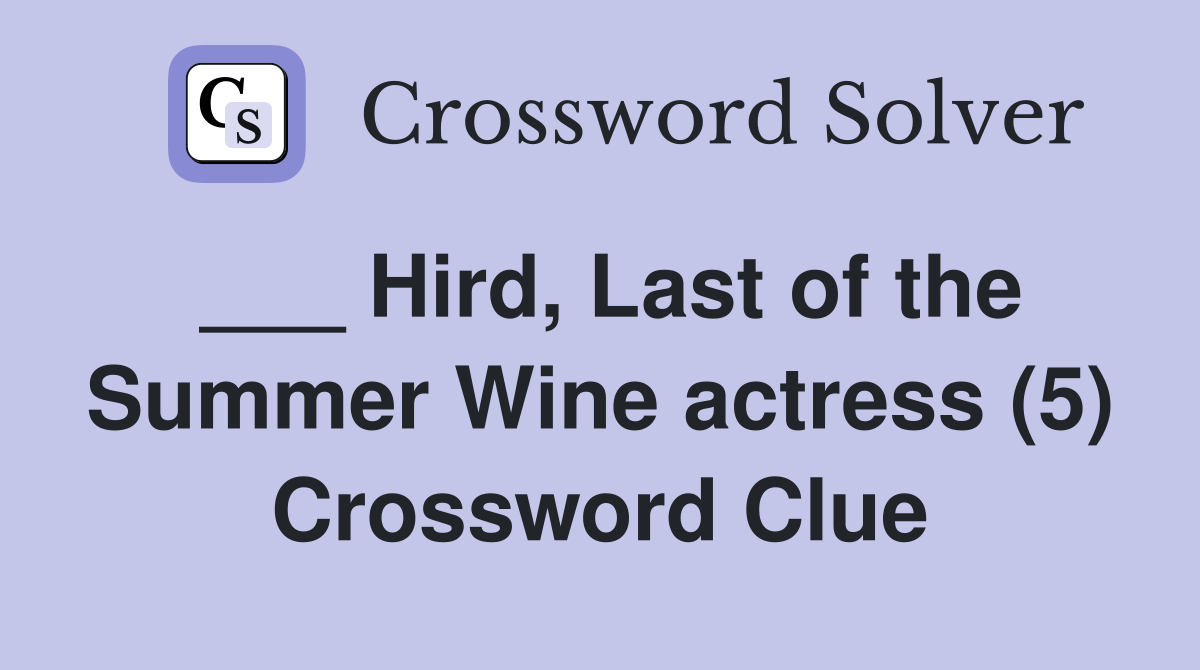 Hird Last of the Summer Wine actress (5) Crossword Clue Answers