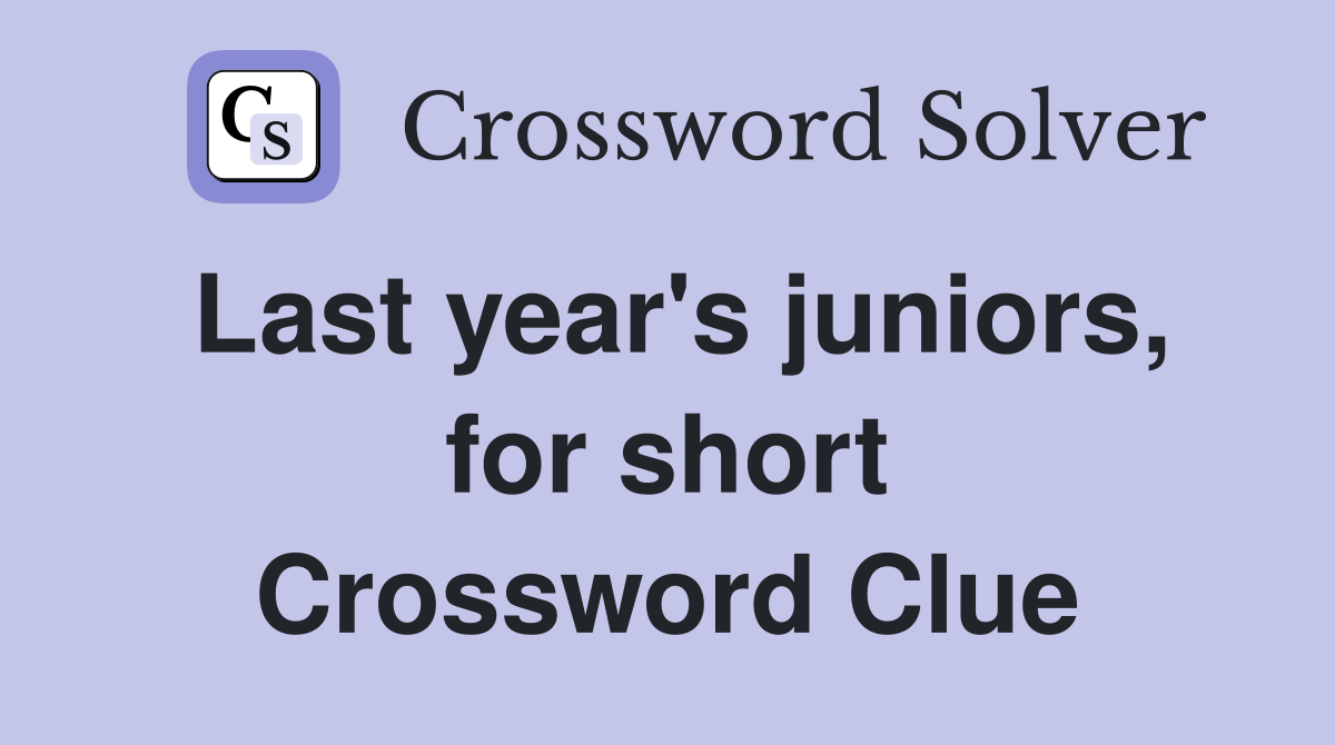 Last year s juniors for short Crossword Clue Answers Crossword Solver
