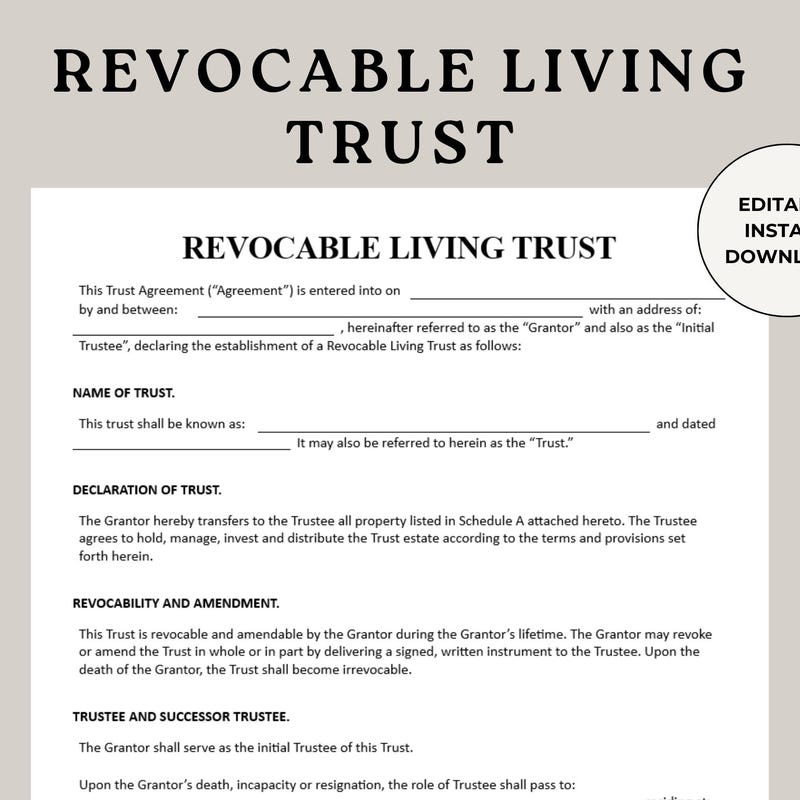 Trust Forms for Estate Etsy