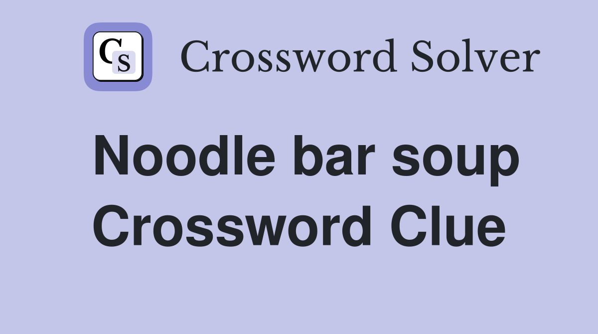 Noodle bar soup Crossword Clue Answers Crossword Solver