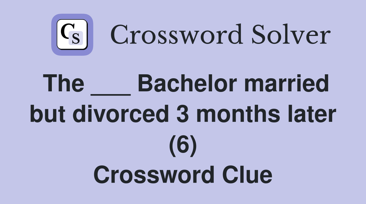 The Bachelor married but divorced 3 months later (6) Crossword