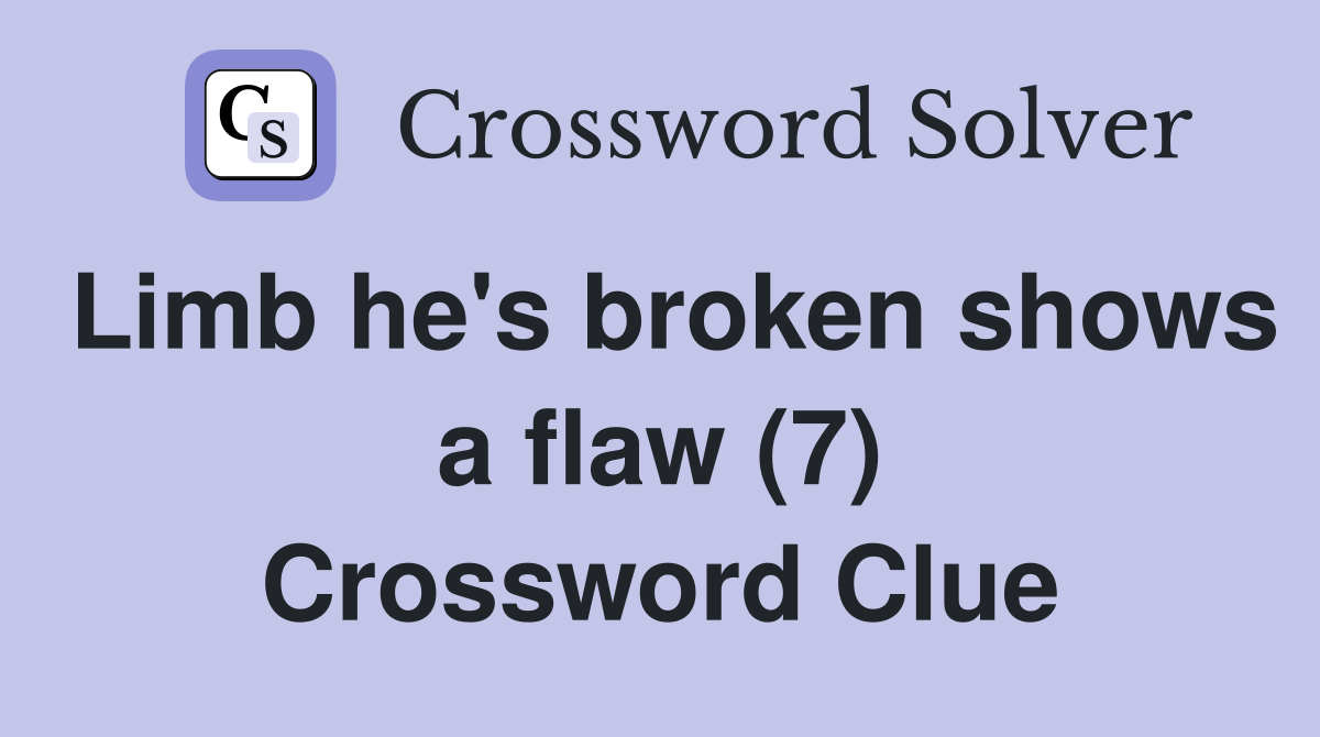 Limb he #39 s broken shows a flaw (7) Crossword Clue Answers Crossword