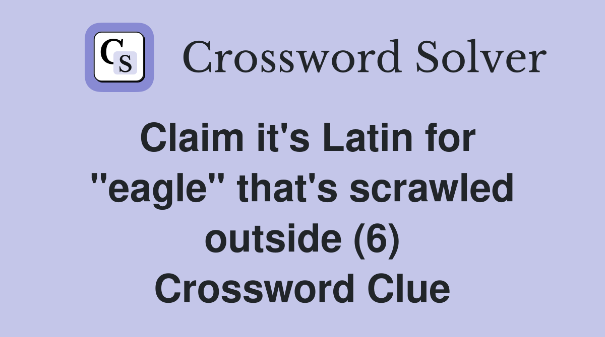 Claim it #39 s Latin for quot eagle quot that #39 s scrawled outside (6) Crossword