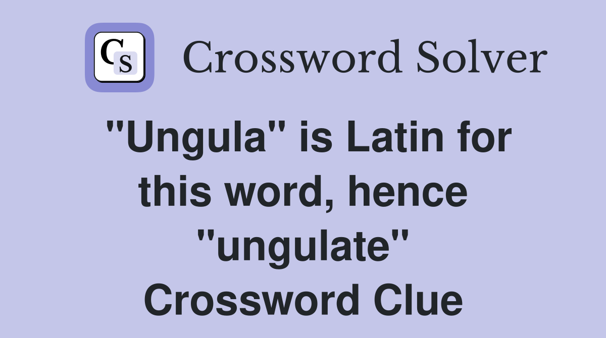 quot Ungula quot is Latin for this word hence quot ungulate quot Crossword Clue