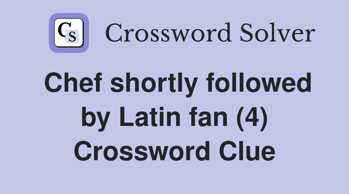 Chef shortly followed by Latin fan (4) Crossword Clue Answers