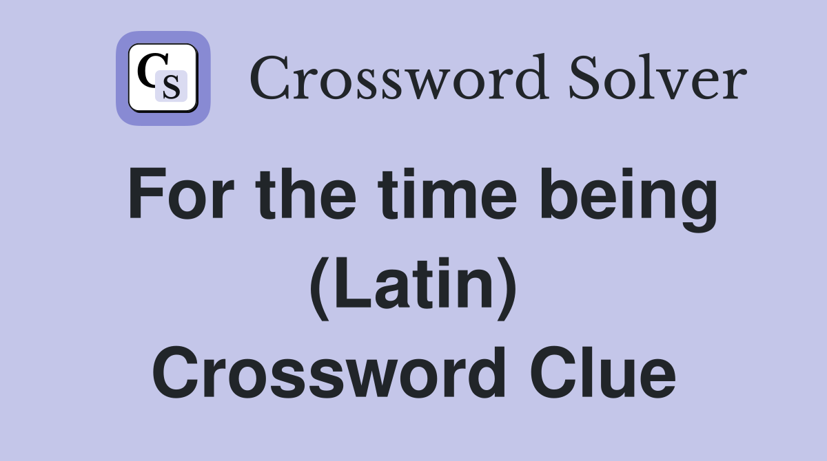 For the time being (Latin) Crossword Clue Answers Crossword Solver