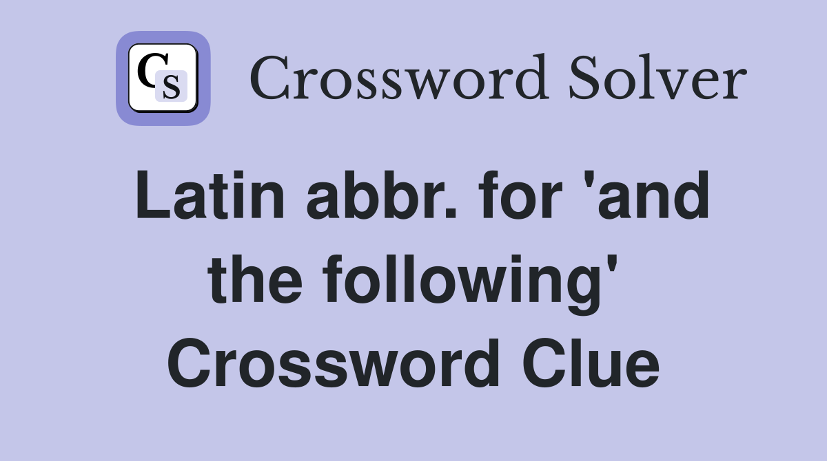 And what follows (abbreviated Latin) Crossword Clue Answers