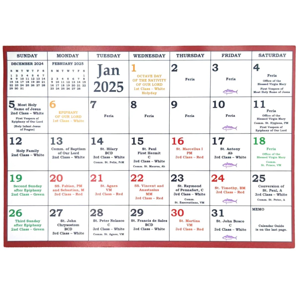 2025 Traditional Catholic Latin Mass Liturgical Calendar Latin Mass