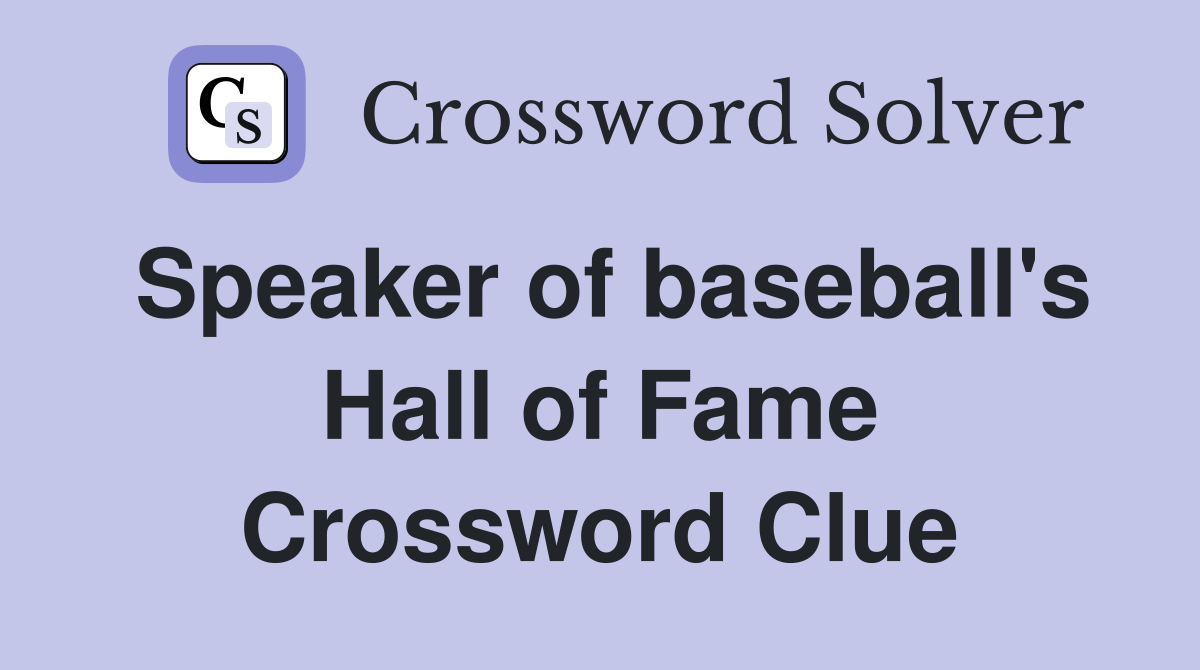 Speaker of baseball #39 s Hall of Fame Crossword Clue Answers Crossword