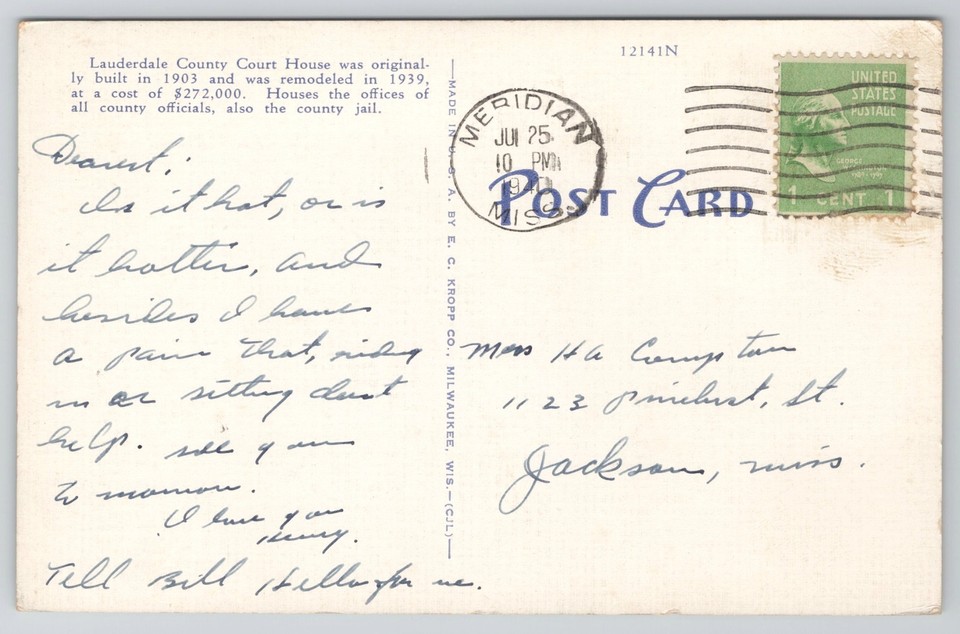 Postcard Lauderdale County Court House Meridian Mississippi eBay