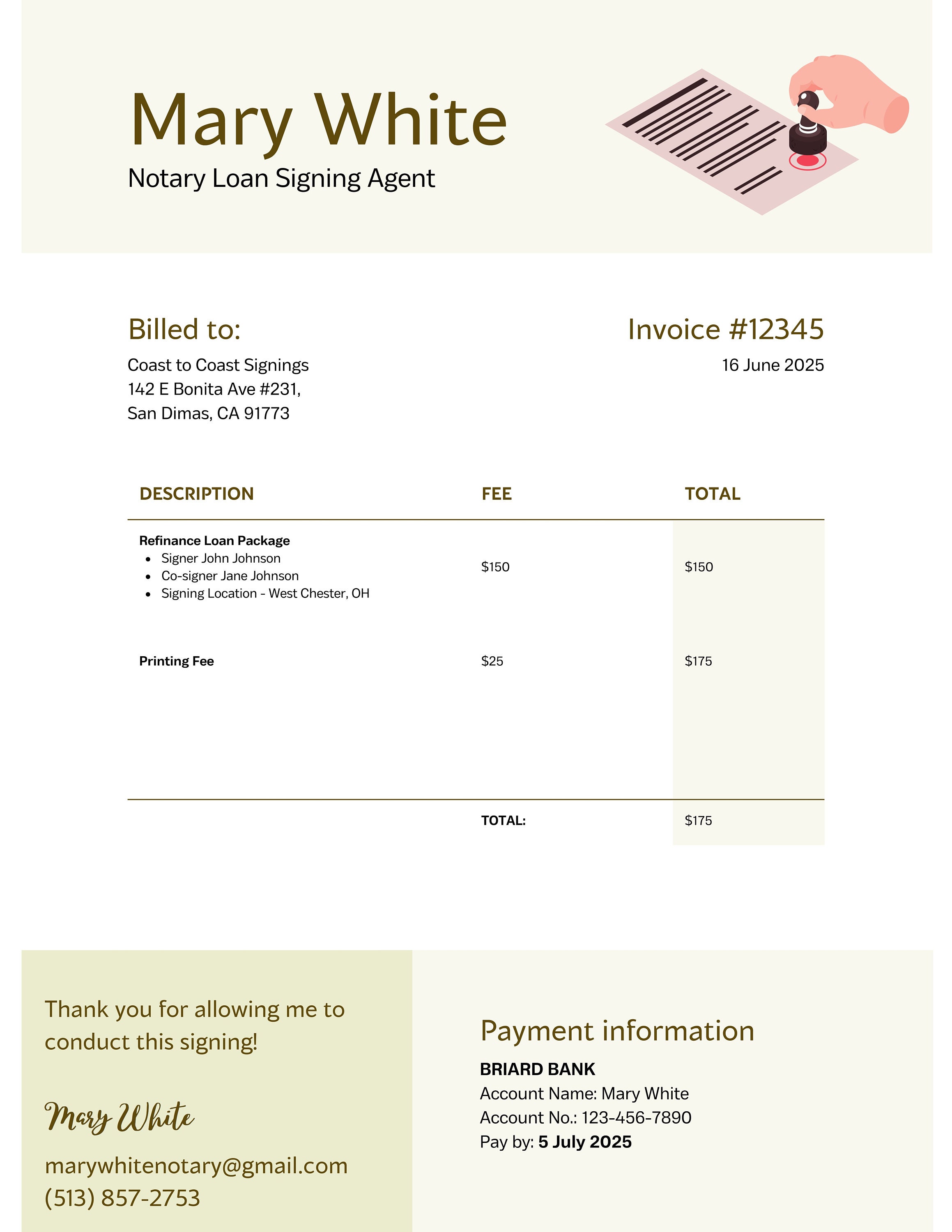 Notary Signing Agent Invoice Template prntbl concejomunicipaldechinu