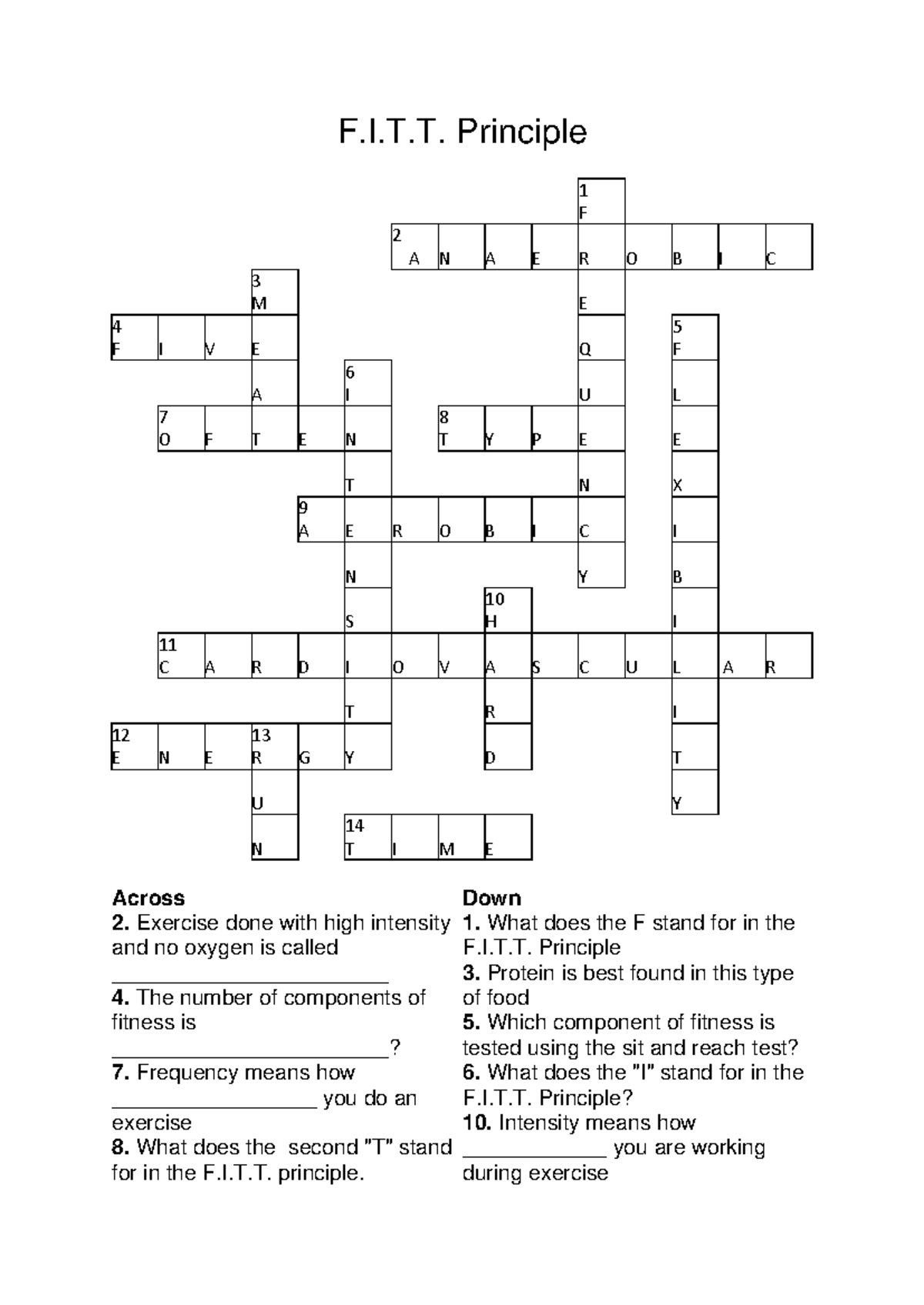 FITT Principle Crossword EC F I T Principle 1 F 2 A N A E R O B I C
