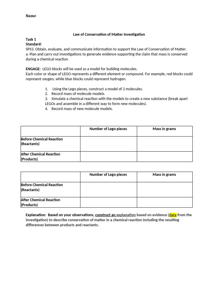 law of conservation of matter lab Doc Template pdfFiller