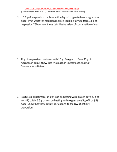 Here are some of the images for Law Of Definite Proportions Worksheet that we found in our website database.