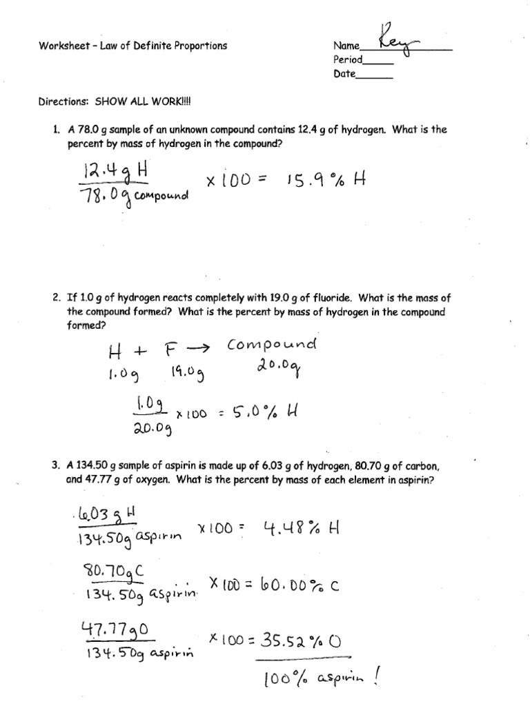Law Of Definite Proportions Worksheet at sasdiscussionblog Blog
