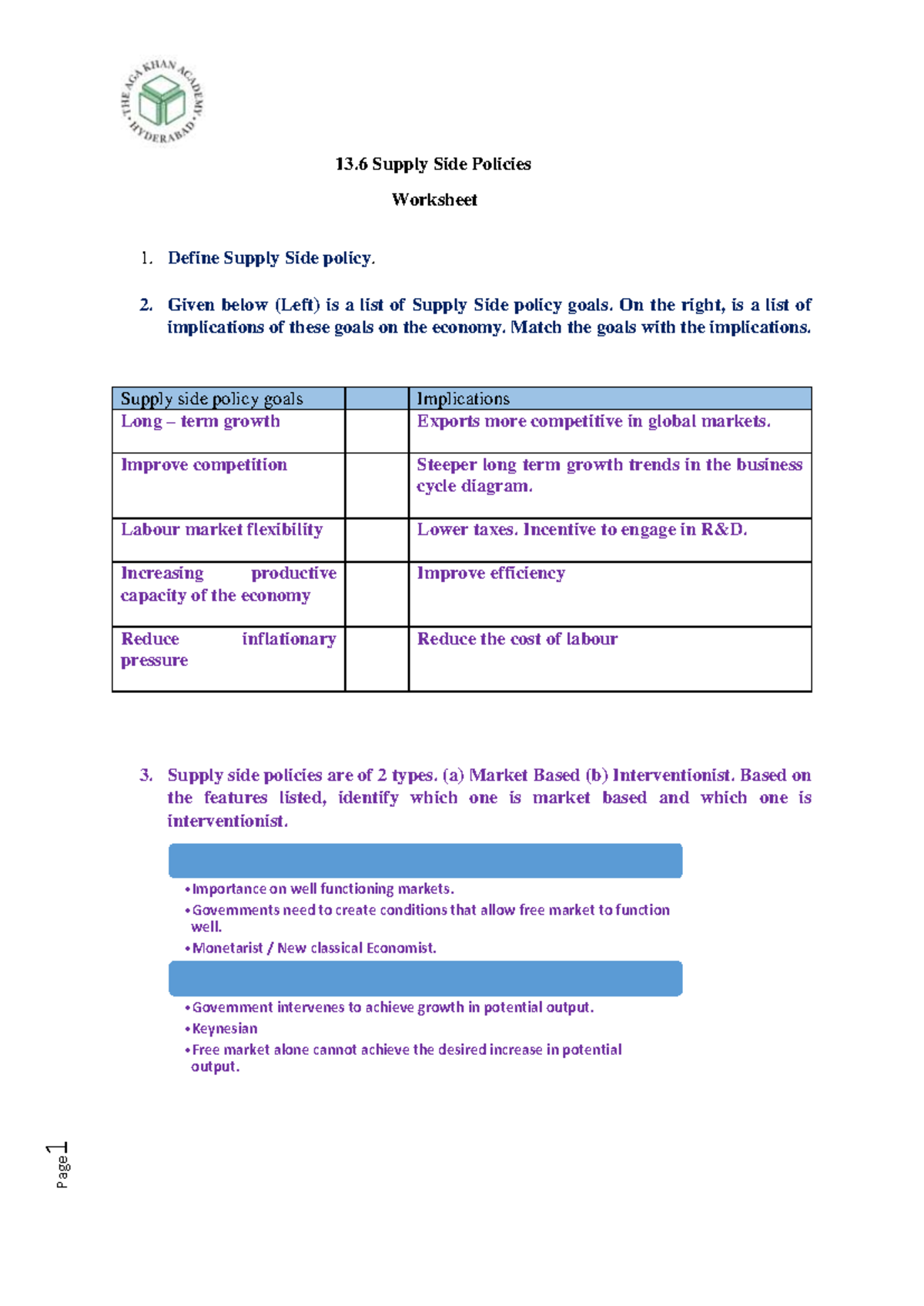 Supply Side Policies Worksheet: Goals and Implications Analysis Studocu