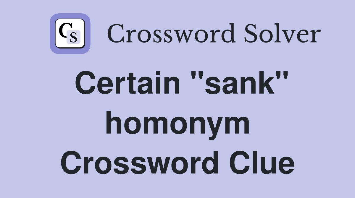 Certain quot sank quot homonym Crossword Clue Answers Crossword Solver