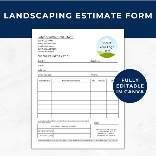 Landscaping Estimate Form Lawn Care Estimate Form Template Etsy