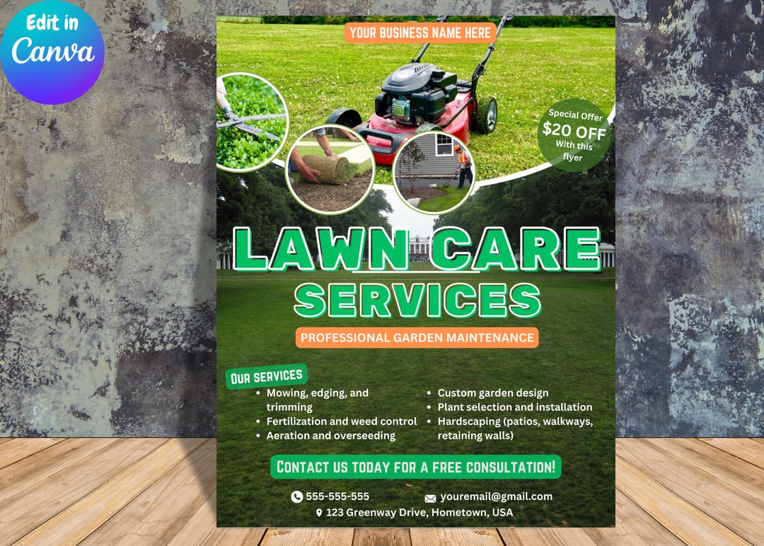 Lawn Care Flyer Template: Editable Landscaping Services Design (canva