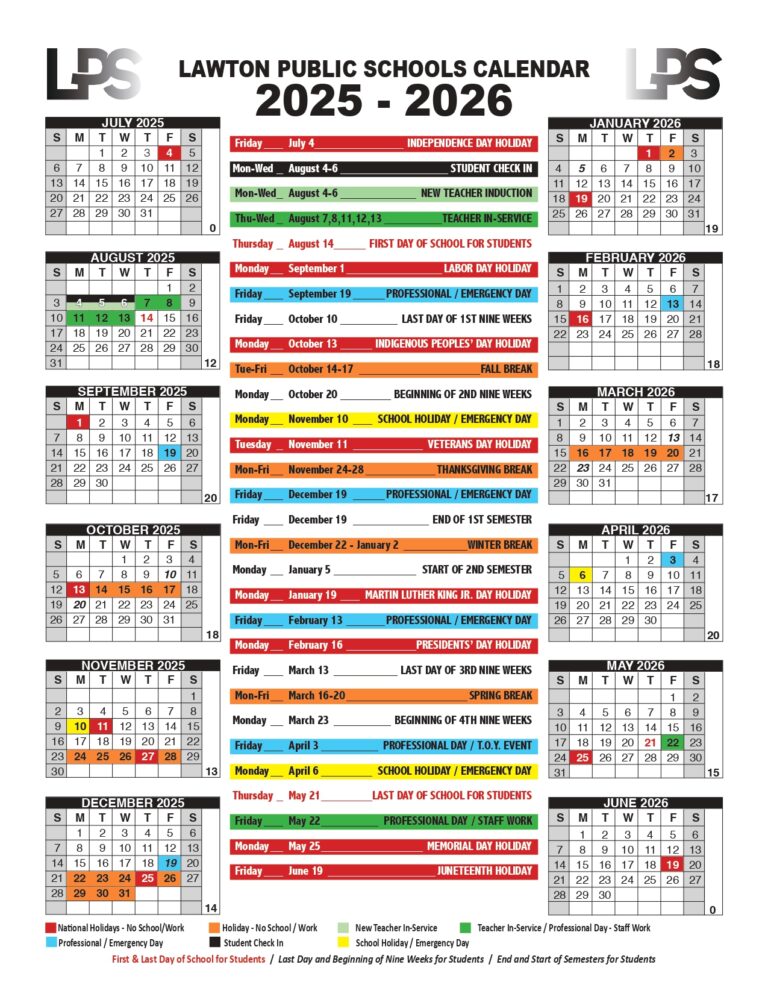 Lawton Public Schools Calendar US School Calendar