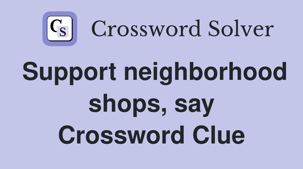 Support neighborhood shops say Crossword Clue Answers Crossword Solver