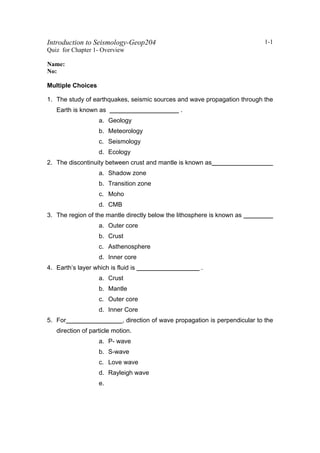 Internal Structure of Earth: Crust Mantle Core Discontinuities