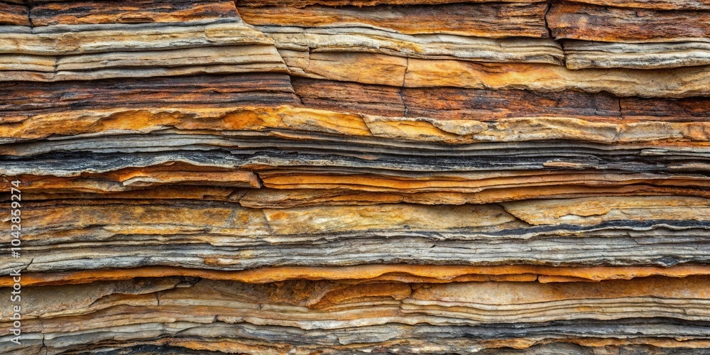 Layered Metamorphic Rock Features Alternating Bands of Rust colored and