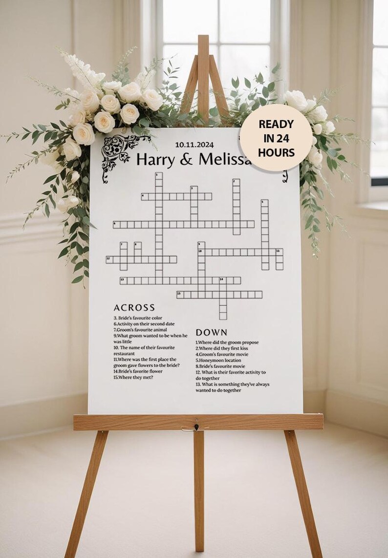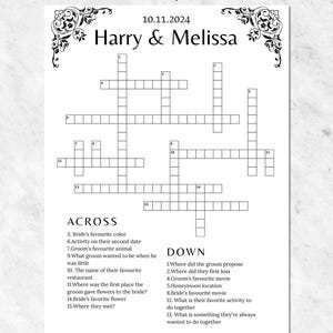 Personalized Wedding Crossword Puzzle Custom Crossword Puzzle Lawn