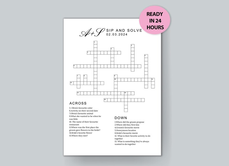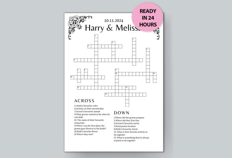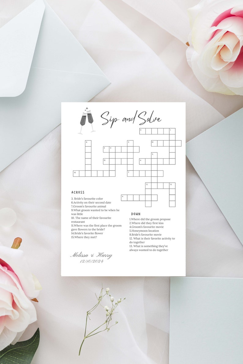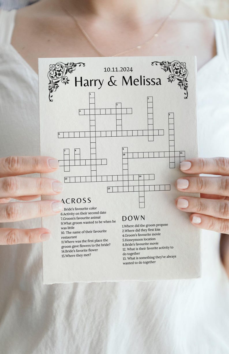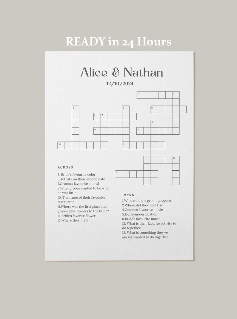 Personalized Wedding Crossword Puzzle Custom Wedding Activity Lawn