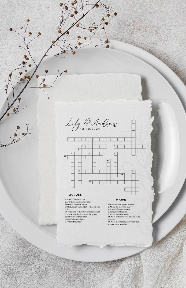 Custom Wedding Crossword Puzzle Minimalist Custom Crossword Puzzle