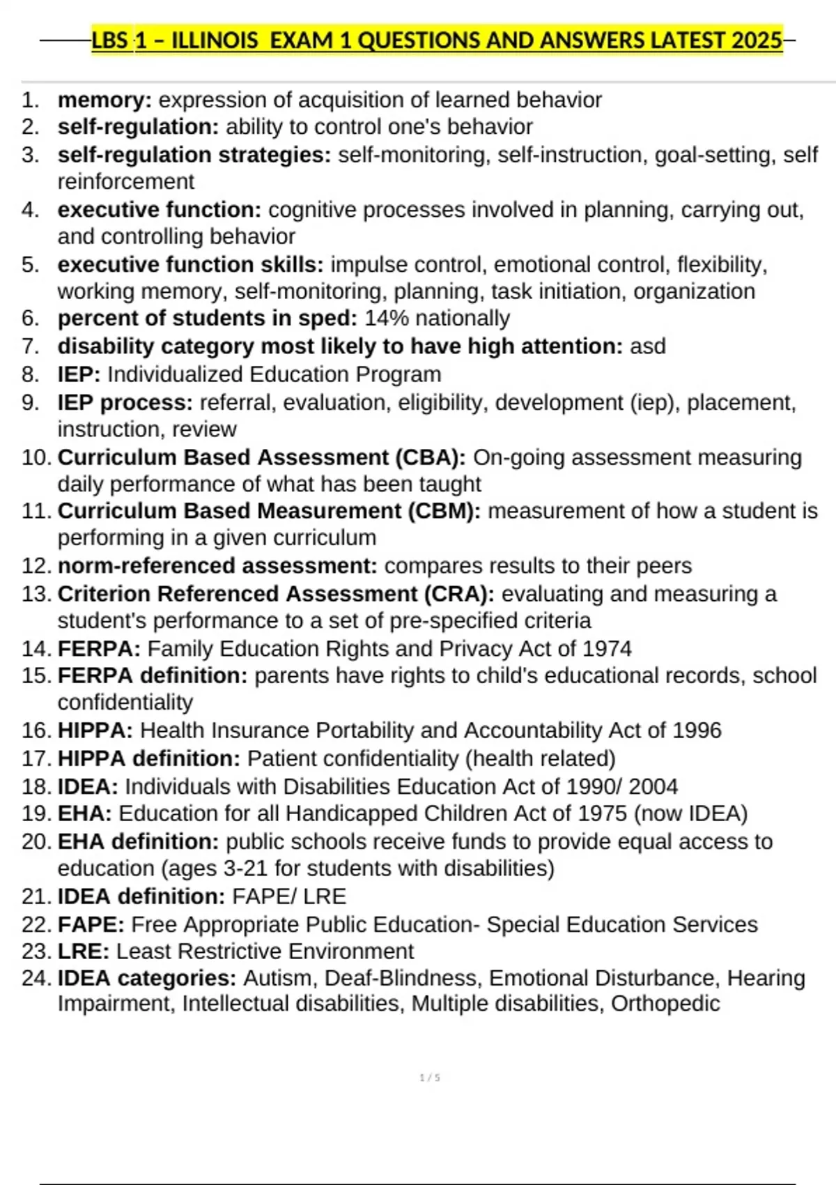LBS 1 ILLINOIS EXAM 1 QUESTIONS AND ANSWERS LATEST 2025 LBS1