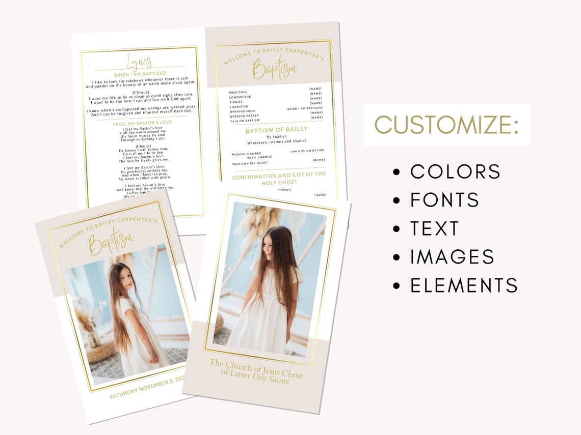 LDS Baptism Program Editable Template With Photo Modern Minimalist