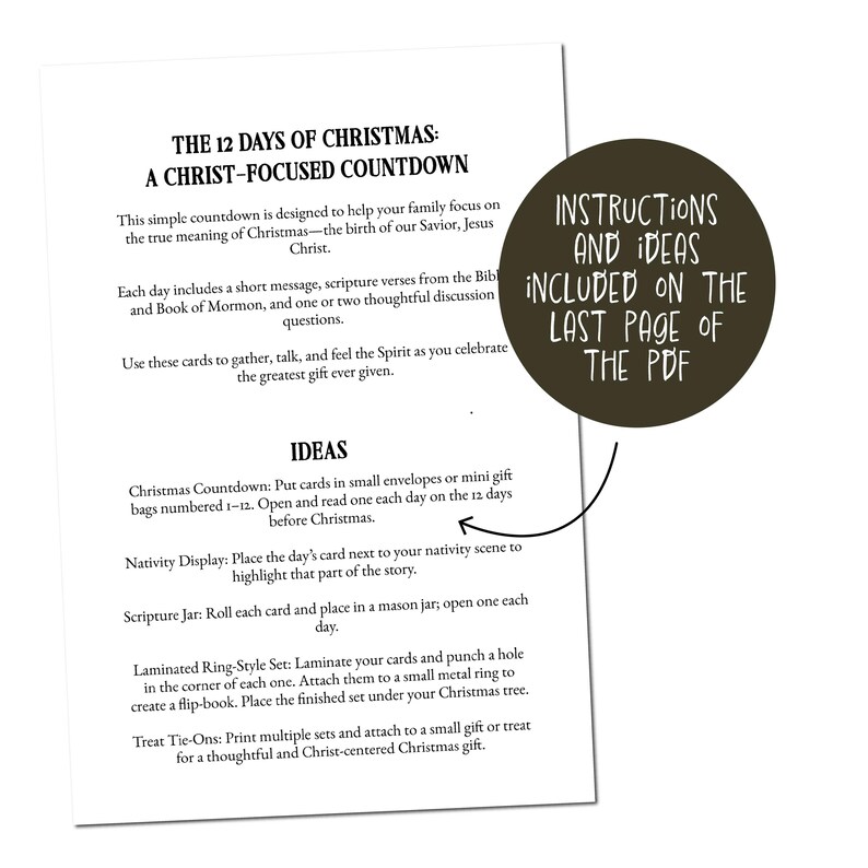 LDS Christmas Study Cards 12 Day Countdown Scripture Advent