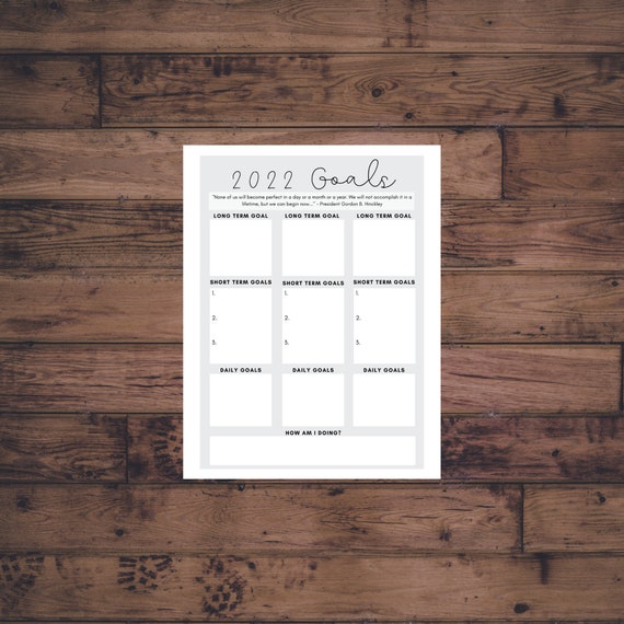 2022 Youth Goal Setting Worksheet LDS Goal Worksheet YW Goal Etsy