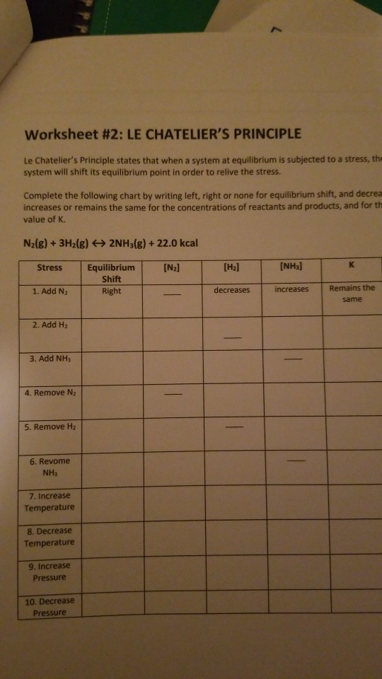 Ws Worksheet Le Chateliers Principle Answers Free Worksheets Samples