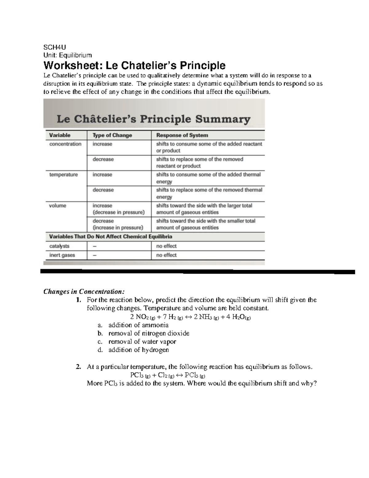 Le Chateliers Principle Worksheet : Lechatelier S Principle And The