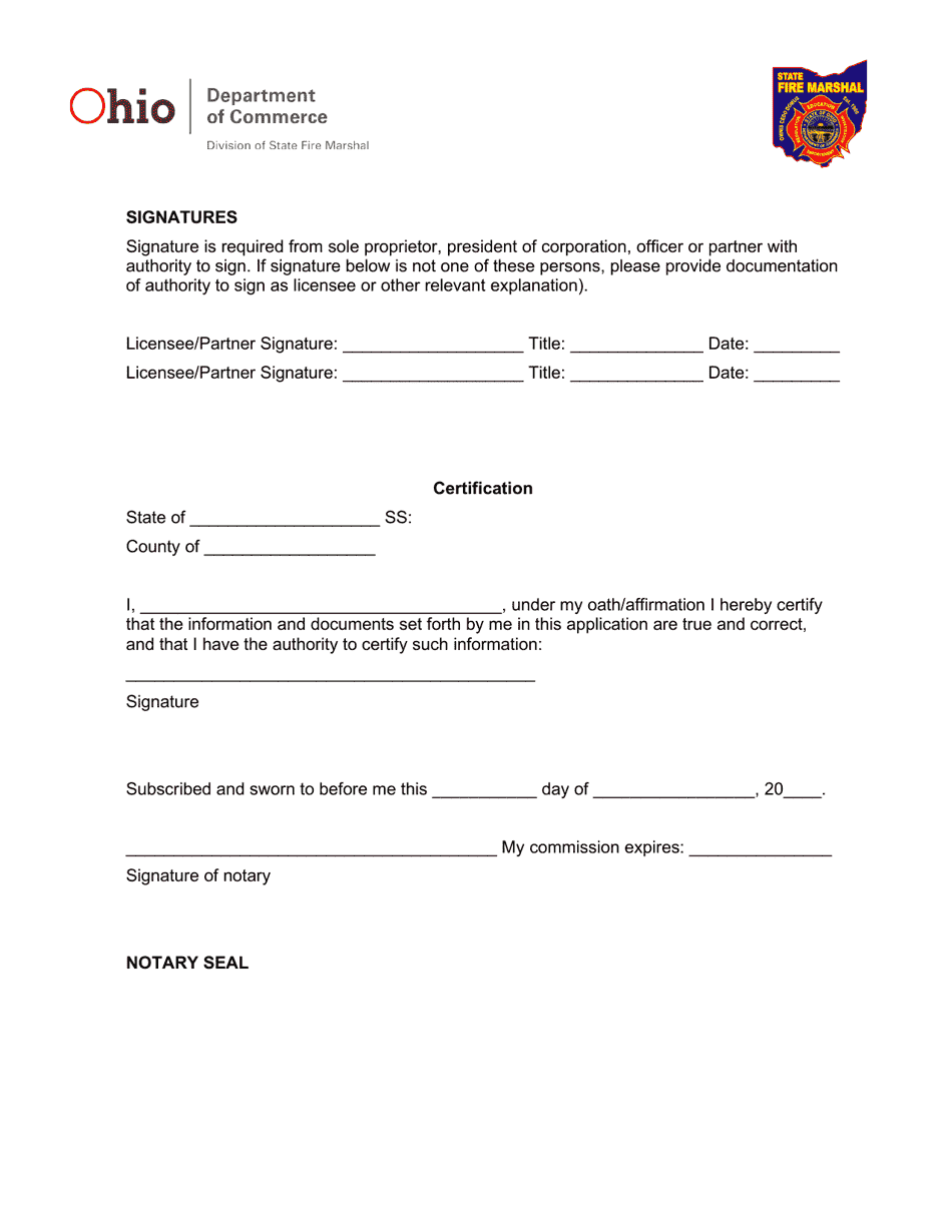 Ohio Fireworks Wholesaler/Fireworks Manufacturer Certification Page