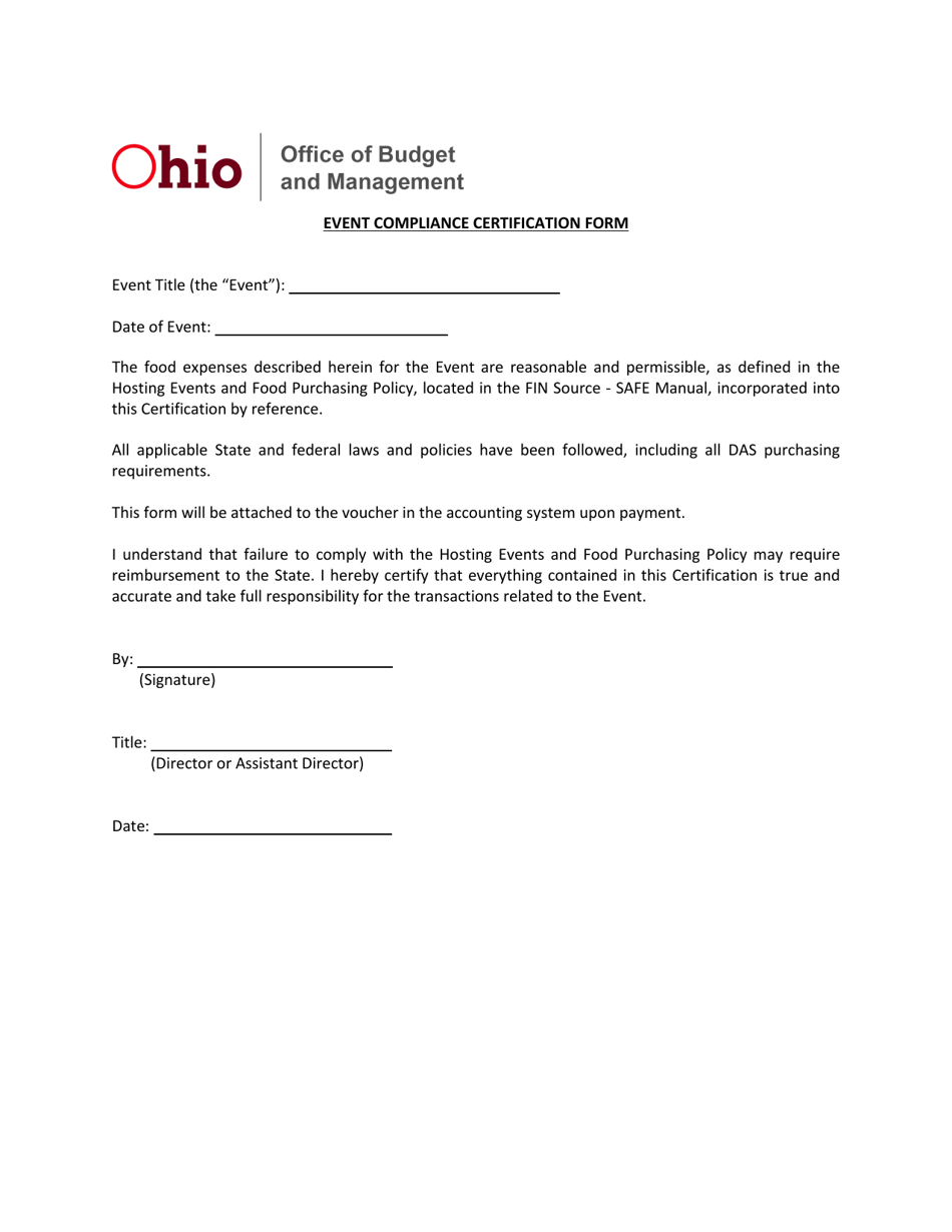 Ohio Event Compliance Certification Form Fill Out Sign Online and