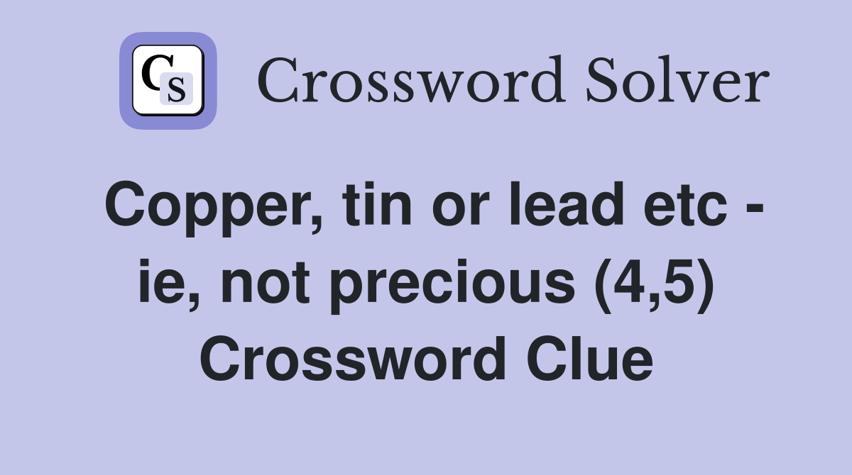 Copper tin or lead etc ie not precious (4 5) Crossword Clue
