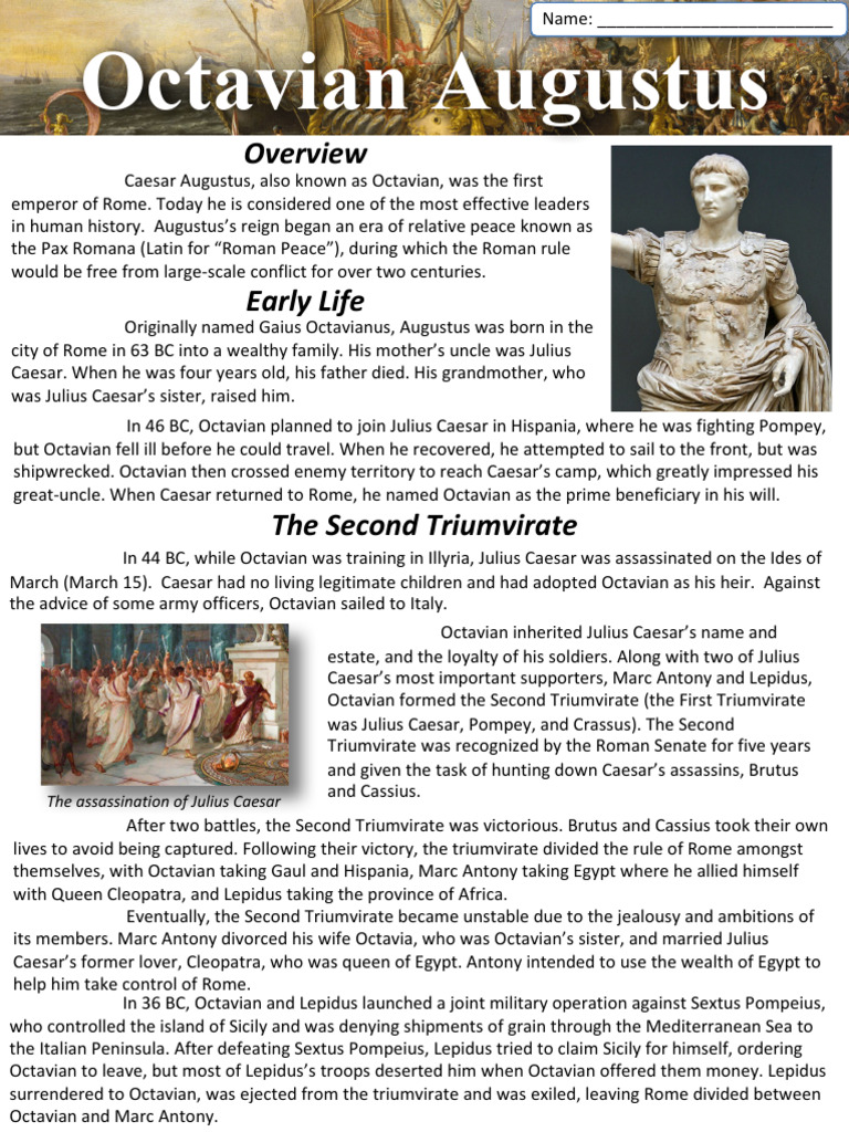 Augustus Caesar Worksheet by Oasis EdTech TPT