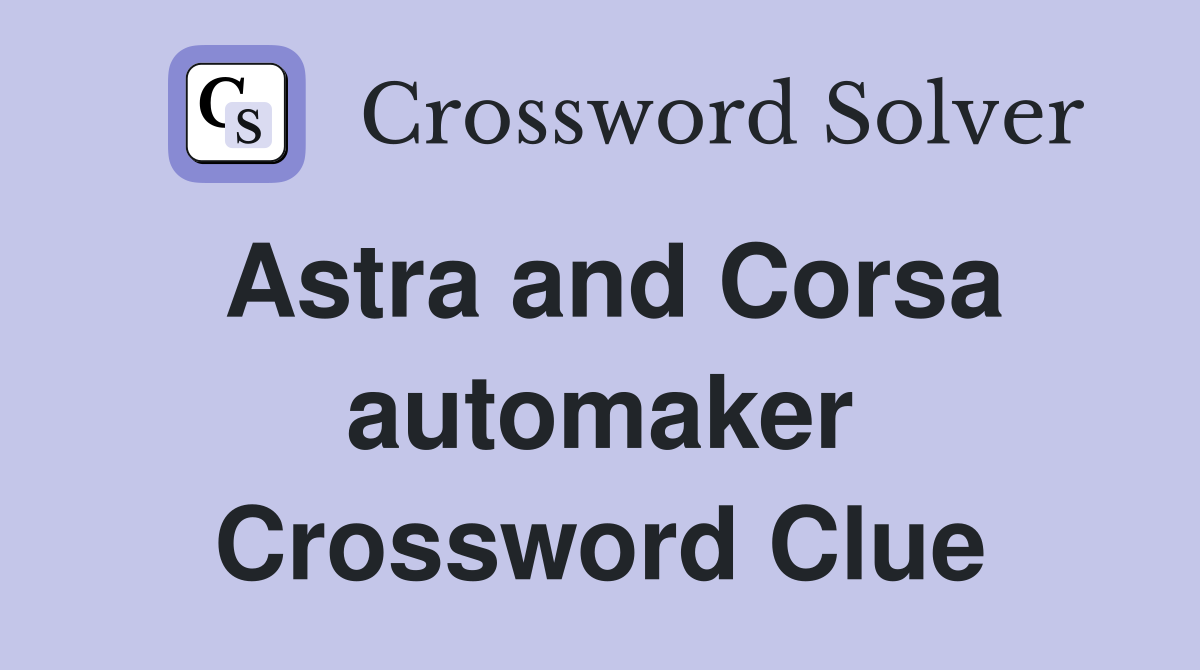 Astra and Corsa automaker Crossword Clue Answers Crossword Solver