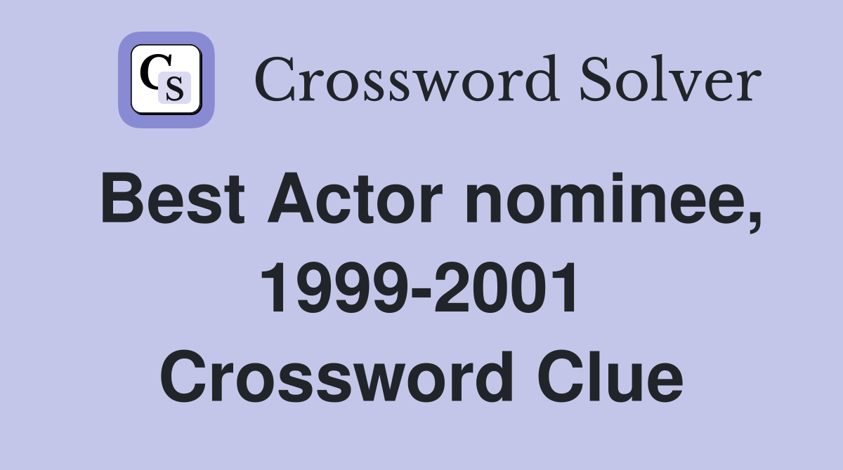 Best Actor nominee 1999 2001 Crossword Clue Answers Crossword Solver