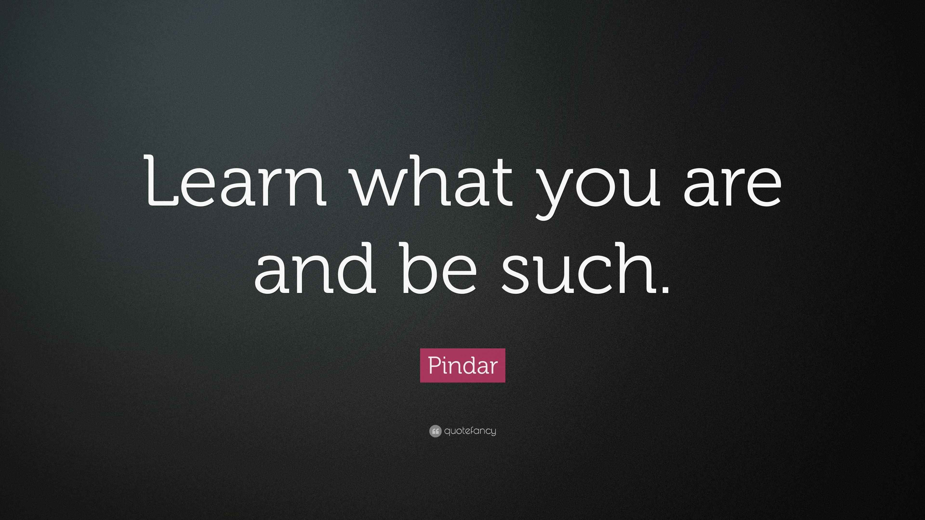 Pindar Quote: Learn what you are and be such