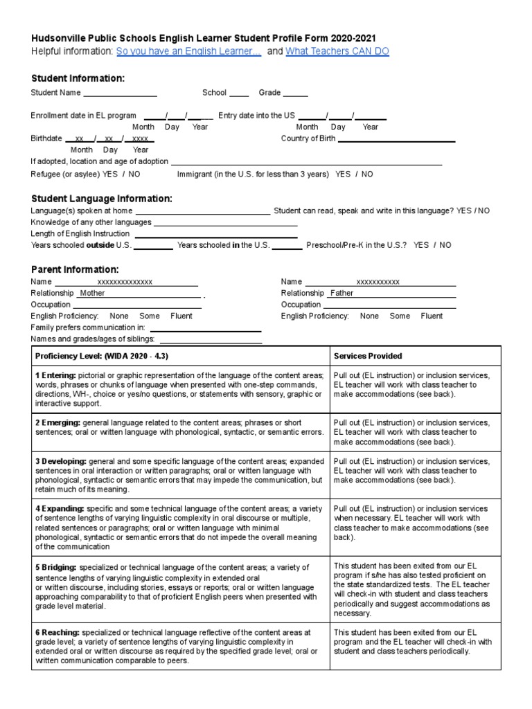 Learner Profile Template Download Free PDF Linguistics Sentence