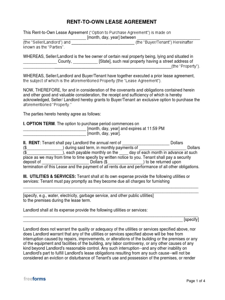 Free Rent to Own Lease Agreement Template