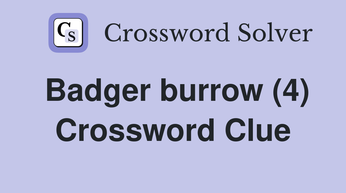 Badger burrow (4) Crossword Clue Answers Crossword Solver