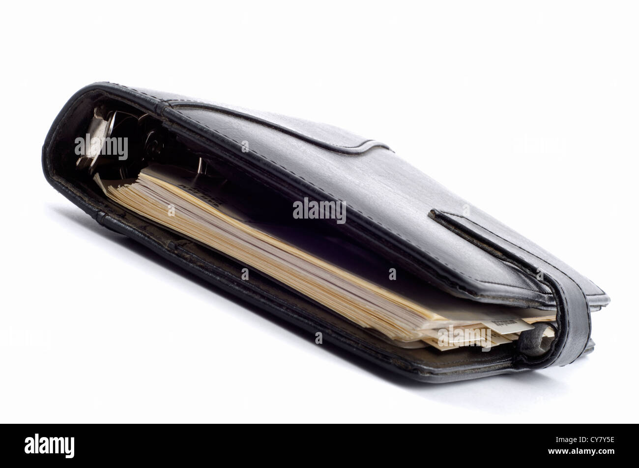 Black leather desk calendar isolated on white Stock Photo Alamy