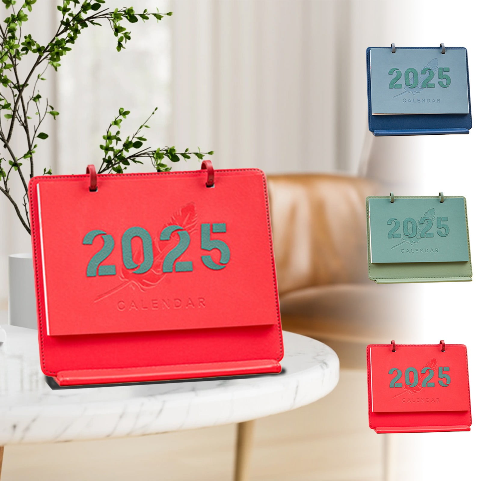 Small Leather Desk Calendar 2025 Use Now to Dec 2025 Standing Flip