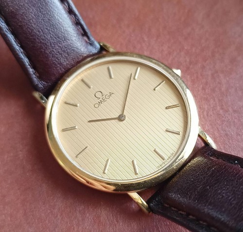 Omega De Ville Vintage Quartz Dress Watch Gold Dial Leather Strap Used